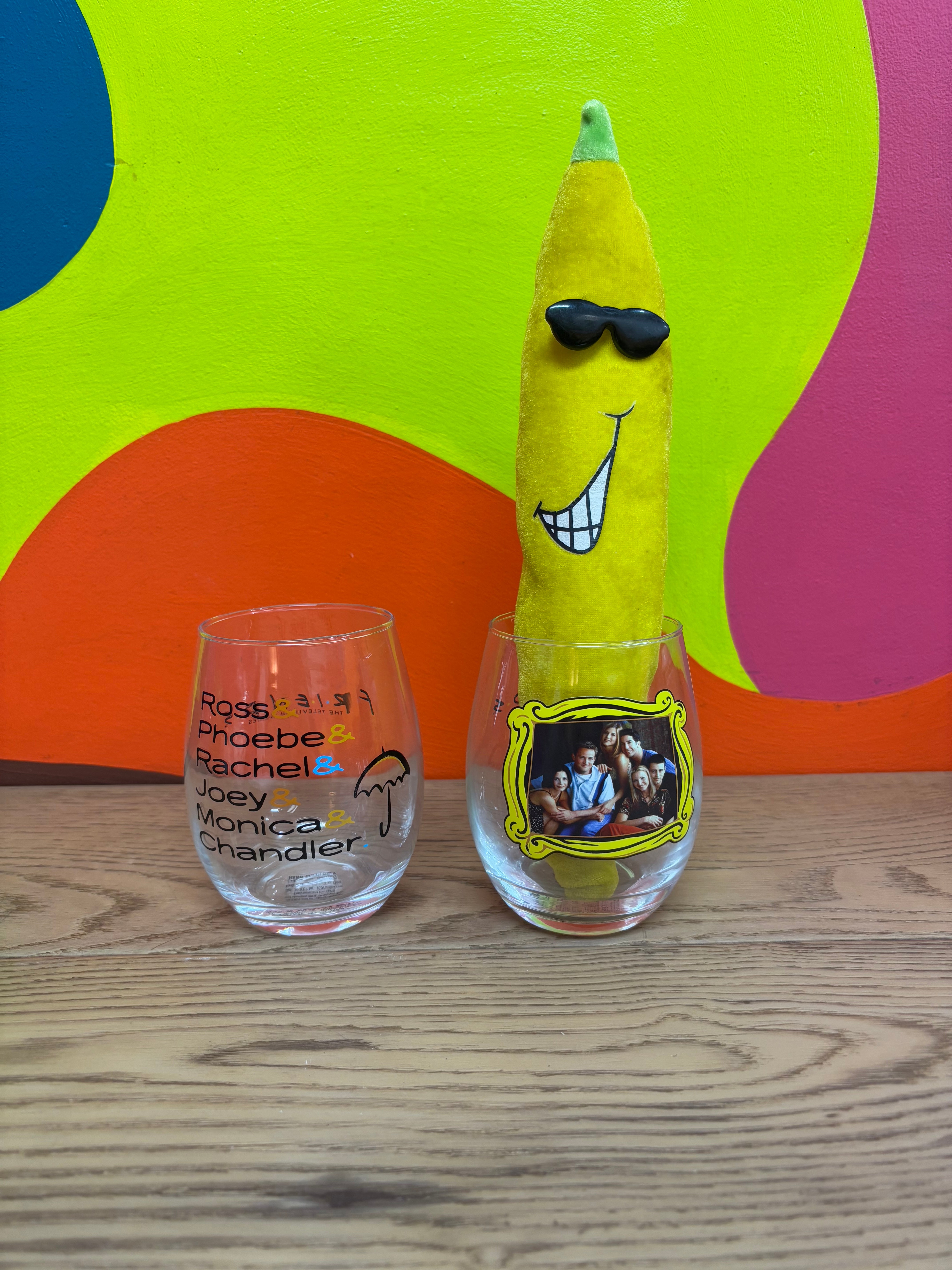 Things you might like to know: One glass is a picture of the cast. The other glass is the character names.