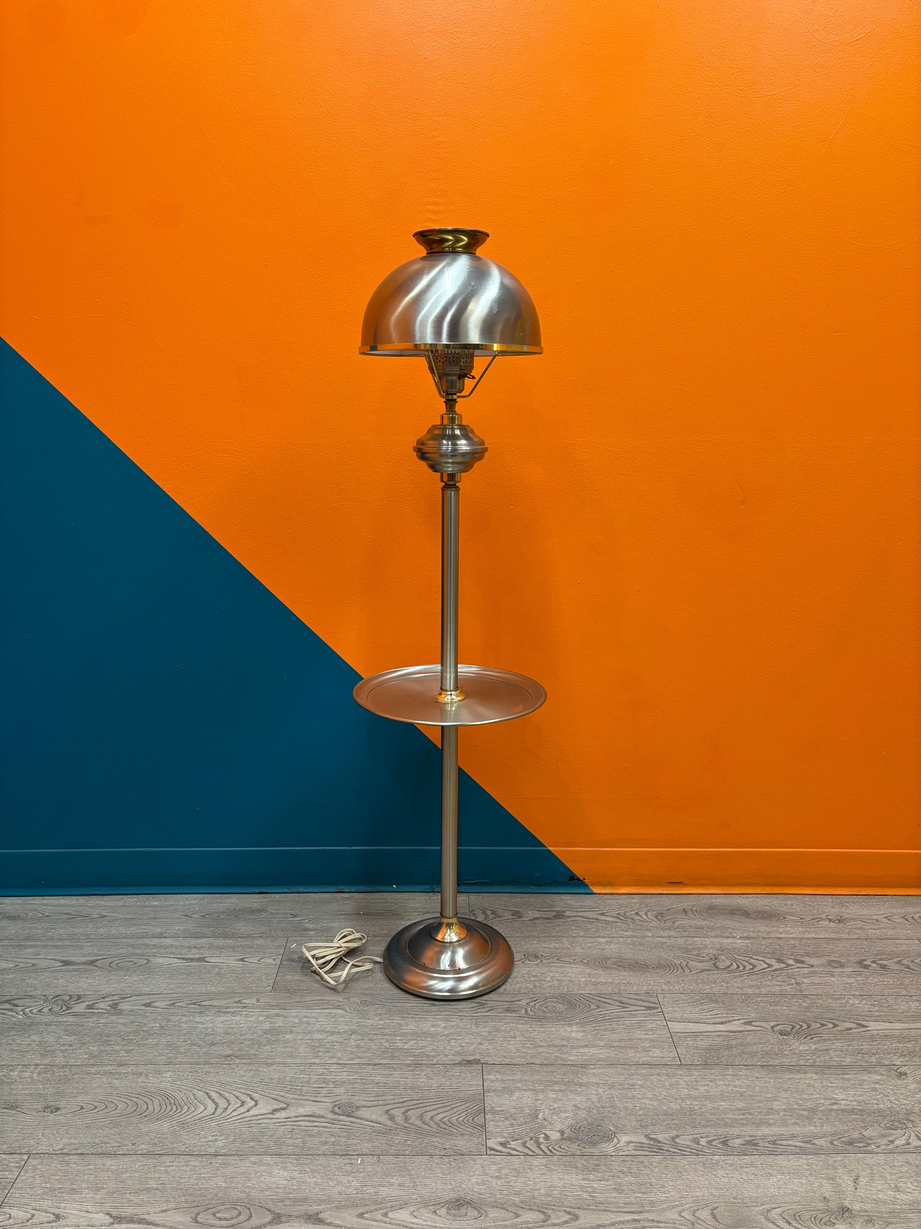 Imperfections: General tarnishing to the metal lamp throughout. Needs a lightbulb. Please see photos for imperfections and details