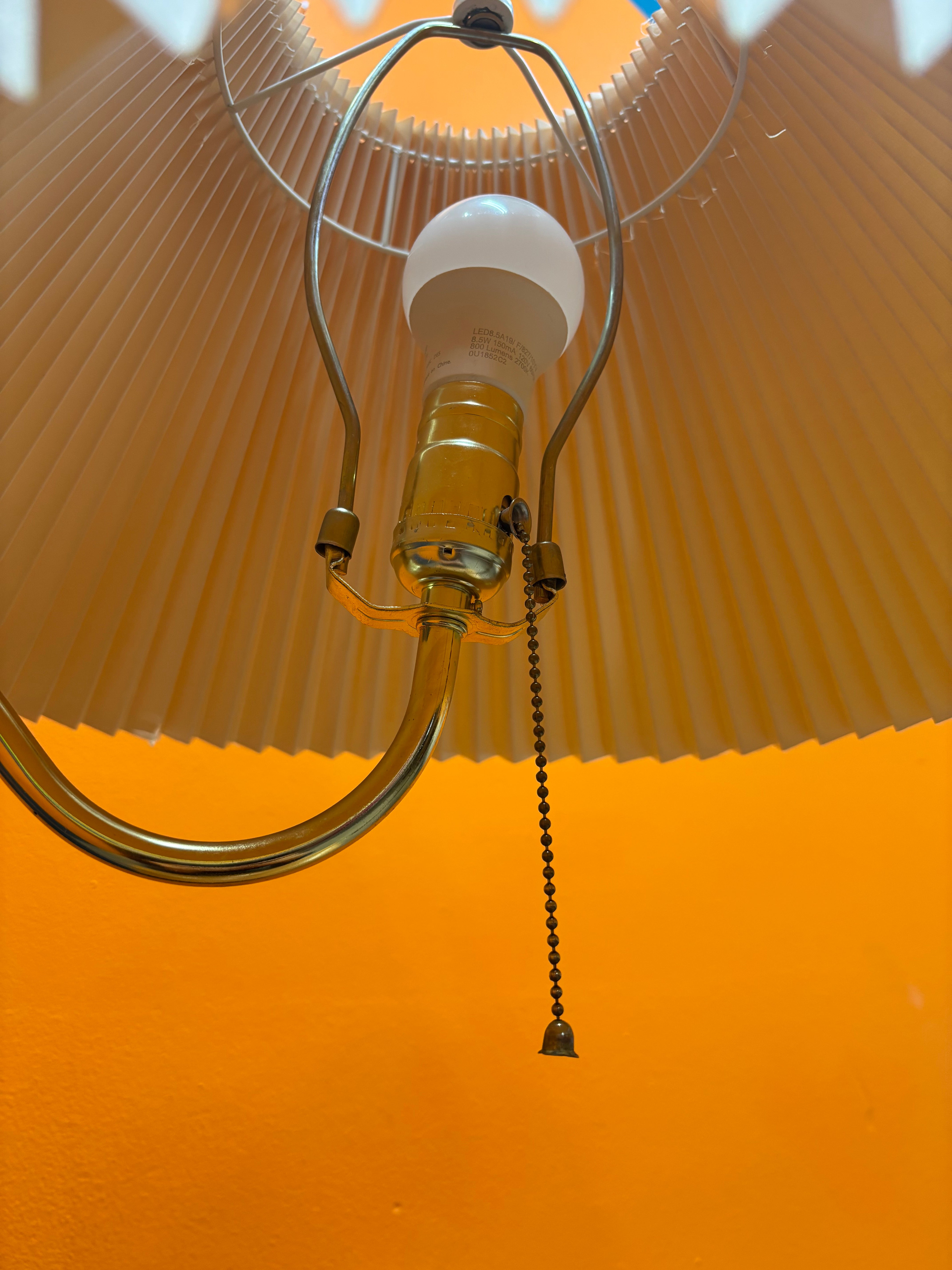 Imperfections: Crack in the top of the lamp shade that goes around the entire thing. Bulb holder where the pull switch is a bit loose. General wear throughout.